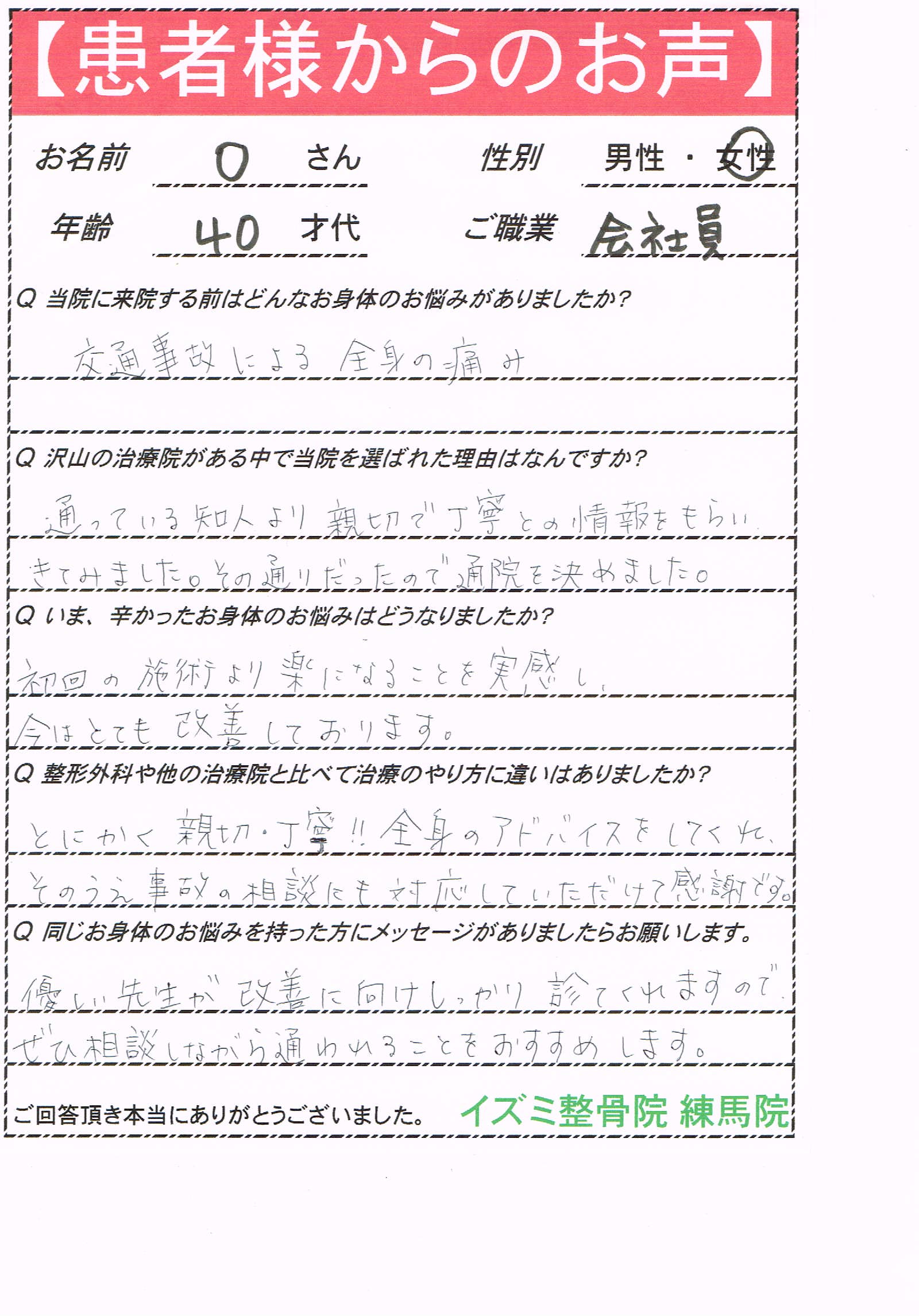 Oさん 40代 女性 会社員の方