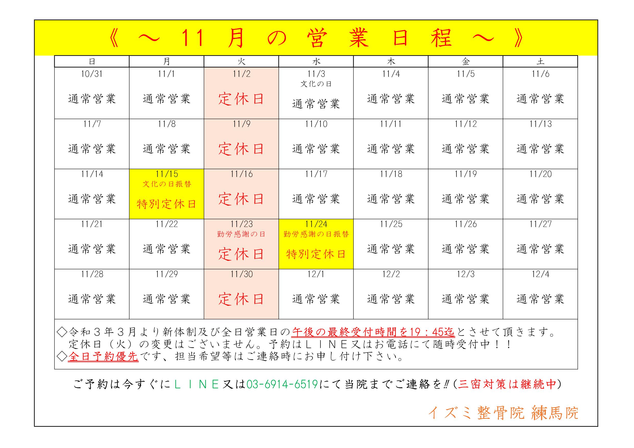 11月の営業日程変更は下記画像をご確認下さい!